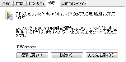 たとえば、アドレス帳 の場所を変更すると